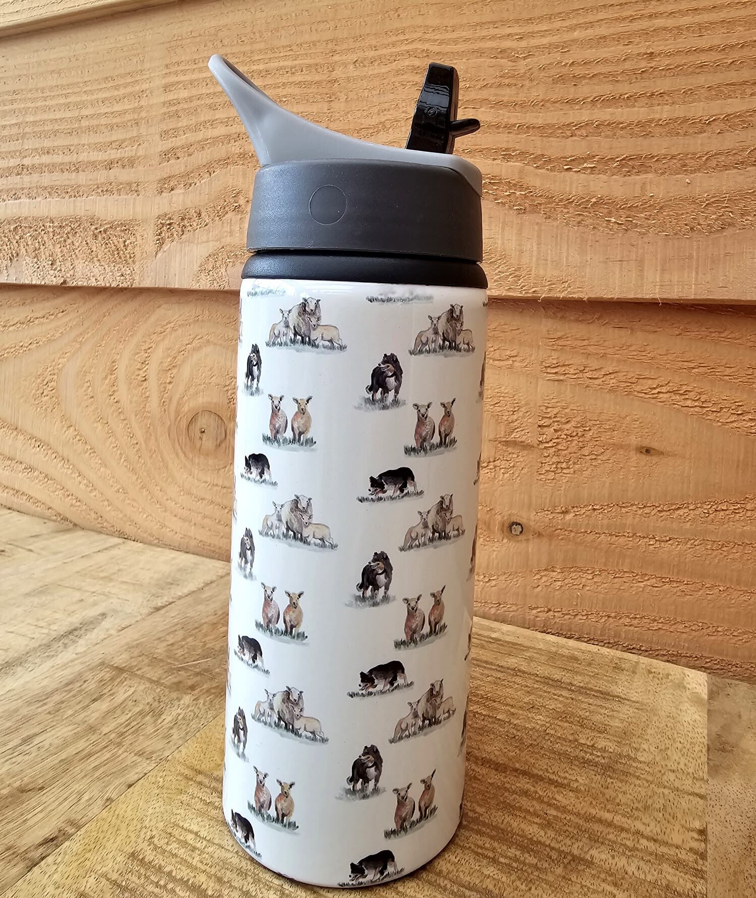 Morsvrije drinkfles met vrolijke Sheepdog print.